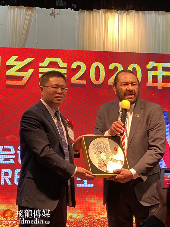修宗明会长代表同乡会向国会议员赠送了精美的中华镂空脸谱瓷器艺术品。