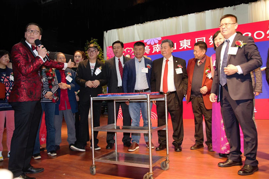 敲锣打鼓迎新年,舞龙舞狮庆年会,今年的年会节目丰富多彩,同乡会传统节目《好汉歌》拉开了晚会序幕,由山东籍医生们组织的牛仔舞带动全场一起跳动, 精心编曲编排的歌曲《我和我的祖国》把现场观众们的心都牵动起来, 一股心底里与生俱来,推之不去的民族情感把海外华人的心迅速凝聚在一起。 释行浩少林功夫学院的山东籍弟子们给大家带来《精武》精神,周洁晓慧舞蹈学校的经典民族舞,东方明珠时装表演队模特展示中国古典服装和传统东方女性特有的韵味,中国传统器乐和中国书法的完美结合,让在场的中外友人和嘉宾们赞叹不绝。电影《芳华》片尾曲的演唱者,著名蒙古族青年歌手阿木古楞给大家演唱了《八面松布尔山》《家乡美》和《草原女民兵》,著名蒙古族音乐人巴达荣贵演唱了《鸿雁》《长调》,两人合唱了《敖包相会》,美妙的歌声将晚会推向高潮。精彩节目一轮又一轮的呈现给大家,精美的抽奖礼品一个又一个的展现给老乡,所有的一切给这个特殊的节日带来更多的欢乐和记忆。四个半小时的晚会结束了,嘉宾们老乡们都觉得时间过得太快,大家都待到最后,把酒欢畅聊天,新老朋友相聚,和演员明星们合影留念,久久不肯离去。