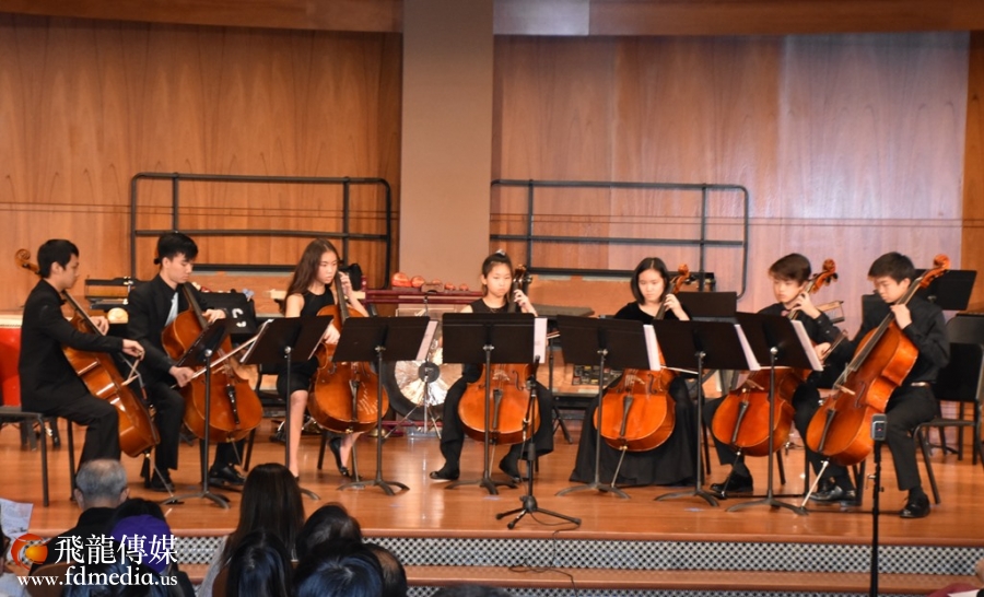 由资深大提琴演奏家Oliver Chen(吴箴)带领的休斯敦社区大学大提琴合奏团。这两首来自两岸的名曲经由吴箴老师的改写,用大提琴合奏的表演形式展现,别具一格。吴老师和她的学生们因活跃于美南地区的音乐会舞台而广受赞誉;中华民乐团历届大型民族音乐会都留有他们的精彩瞬间。