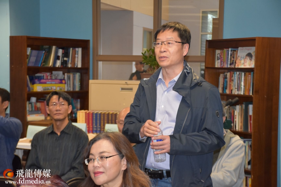 新华社驻休斯敦记者站刘立伟主任听完尹教授的讲座后提问,如何才能更好的更广泛的传播国学文化?