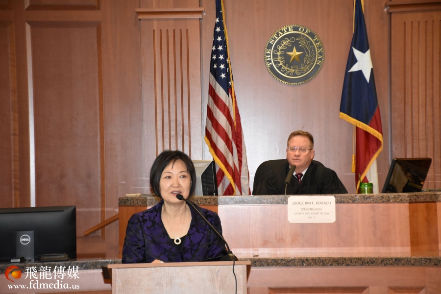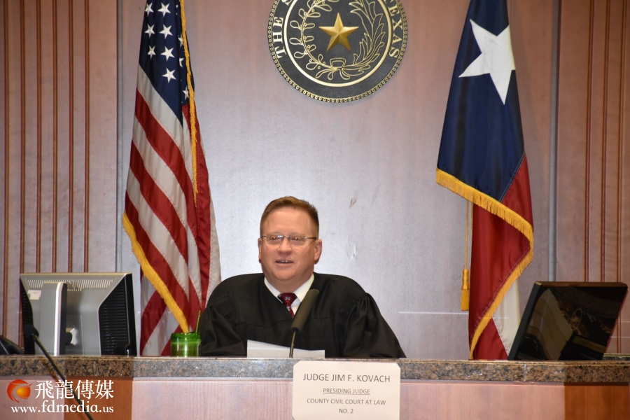 张文华法官油画俏像揭幕仪式由哈瑞斯郡民事法院第2法庭现任法官吉姆·科瓦奇主持。