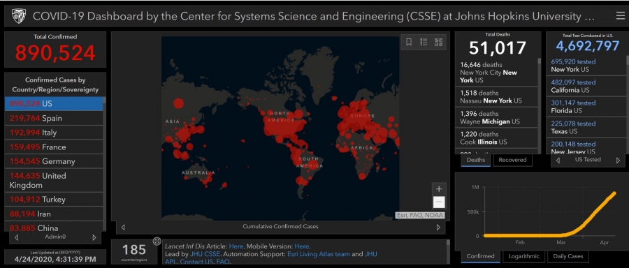 截图来自约翰·霍普金斯大学(Johns Hopkins University) 数据