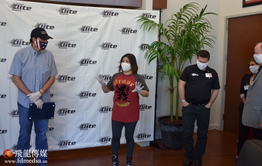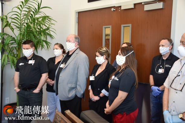 国会议员Pete Olson 到医院支持,并带来了慰问涵。休斯敦华星艺术团团长鲍玲、中国人活动中心副执行长杨德清等参加了捐助活动。