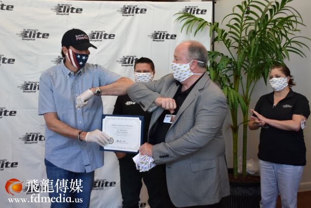4月24日,在休斯敦福遍郡税务总长候选人张晶晶(J.J. Clemence)的带领下,包括中国人活动中心、休斯敦华星艺术团、各同乡会、大学校友会等20多个社团参与的华人抗疫团队,在做好自救的同时,给大休斯敦地区的医院、警察局、老人院几十个单位捐献了抗疫物资。今天,又一批3000个口罩其中包括900个N95口罩捐给了st.michael's医院,记者在现场看到st.michael's hospital医生带着自制的口罩,是一个两层纤维布合成的口罩,医院CEO Don Vickers感谢华人社区,在灾难来临的时候给医院提供帮助,与医护人员一起共同抗疫。