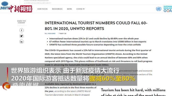世界旅游组织:2020年全球跨境旅游人数或减少六至八成