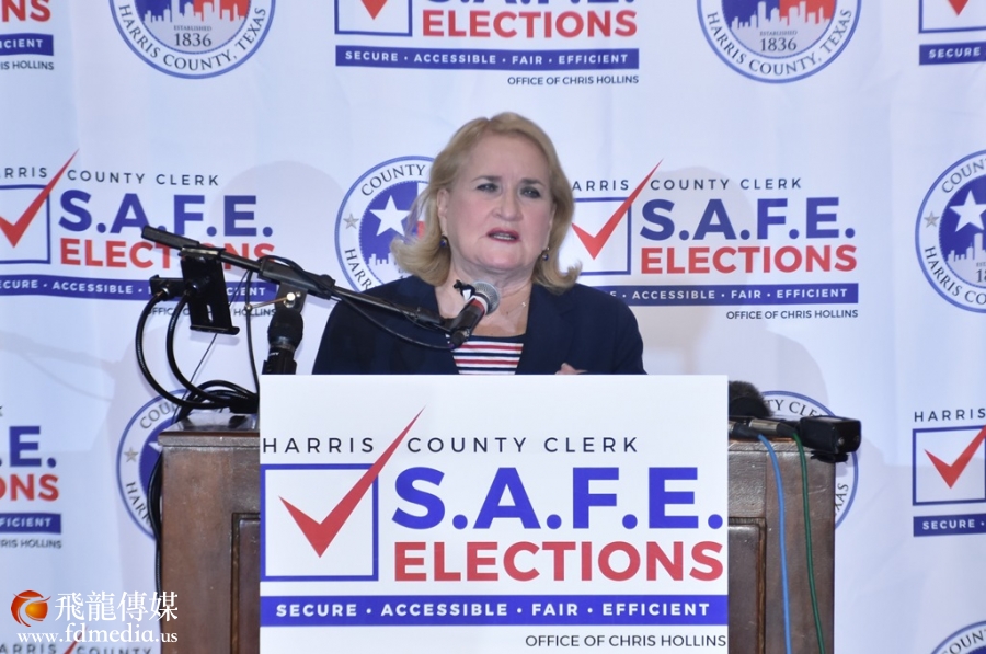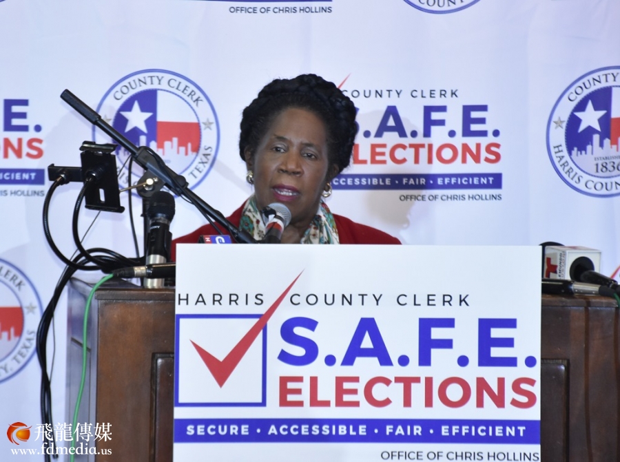 美国国会 TX 18选区国会议员希拉·杰克逊·李(Sheila Jackson Lee)、美国国会TX 29选区国会议员西尔维亚·加西亚(Sylvia Garcia)赶到哈里斯县计票中心NRG Arena体育馆讲话。哈里斯县书记官克里斯·霍林斯(Chris Hollins)将会在今晚在NRG Arena体育馆宣布哈里斯县的选举最终数据。
