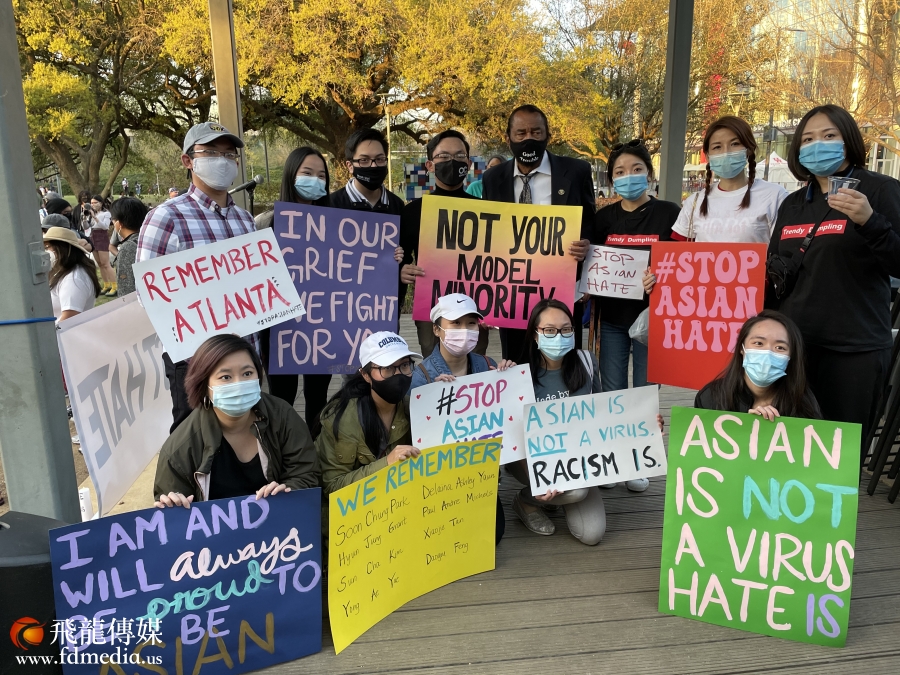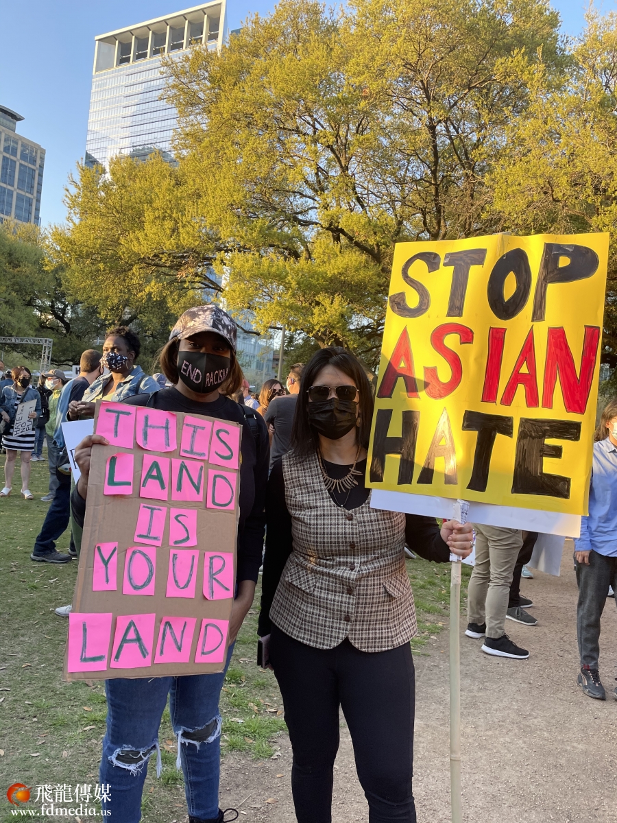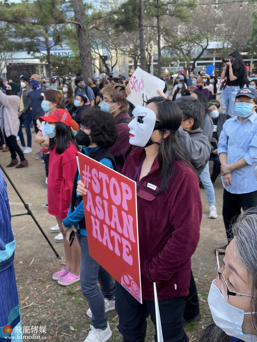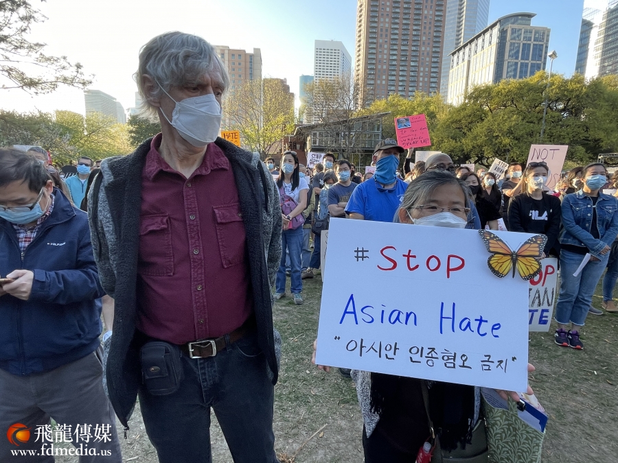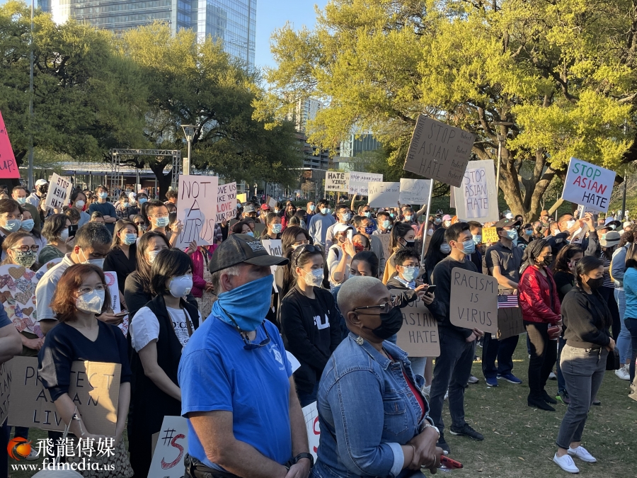 3月20日,休斯敦千人聚集在市中心(Discovery Green)公园,为几天前在佐治亚州亚特兰大地区按摩院发生的致命枪击案的遇害者伸张正义,谴责反亚裔暴行、种族主义和仇外心理,呼吁亚裔团结起来发出声音。