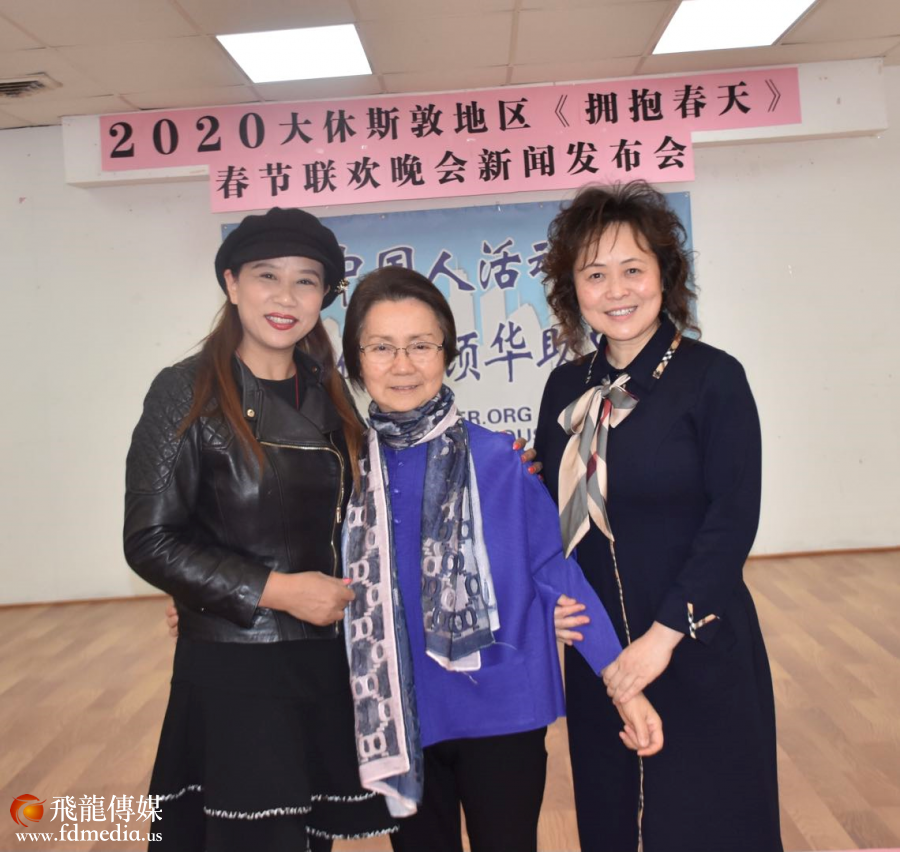 图右起:“明州故事”制作人 Nancy Tang、休斯敦华星艺术团团长鲍玲、休斯敦华星艺术团新闻总监陈铁梅在休斯敦合影。
