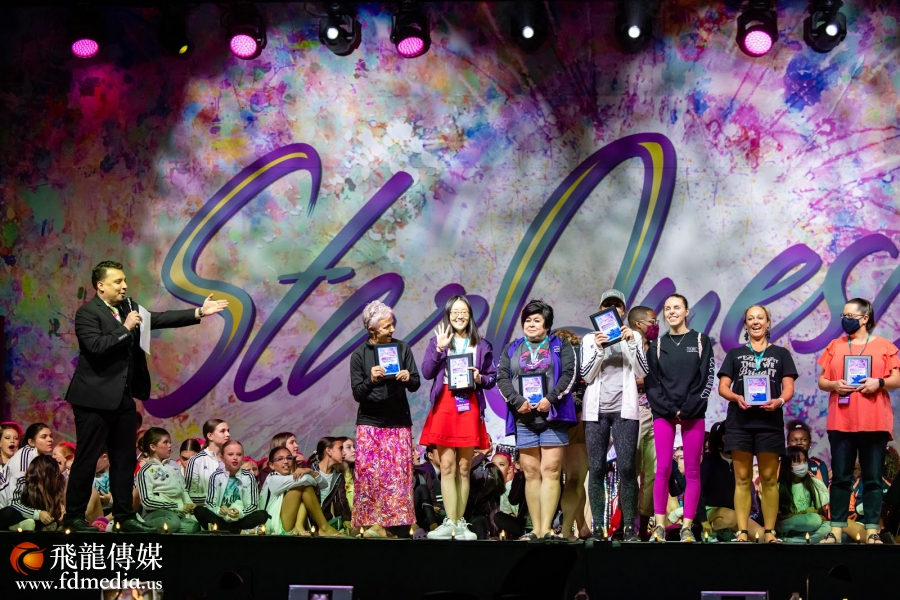 张迪老师(右六)登台接受StarQuest 授予OAEC 的大奖 - Studio Superlative Award
