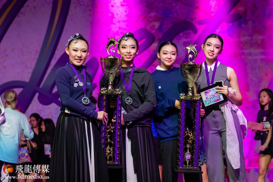 Lana Xu《Tears of An Angel》High Gold Award; Chloe Xia 《Wondering》Nova Junior Solo Overall 7th Place; Selina Dong 《The Beat》Classic Junior Solo Overall 4th Place; Angela Ding 《Saturn》Nova Junior Solo Overall 4th Place; Helen Gou 《Water Sleeves》High Gold Award.
