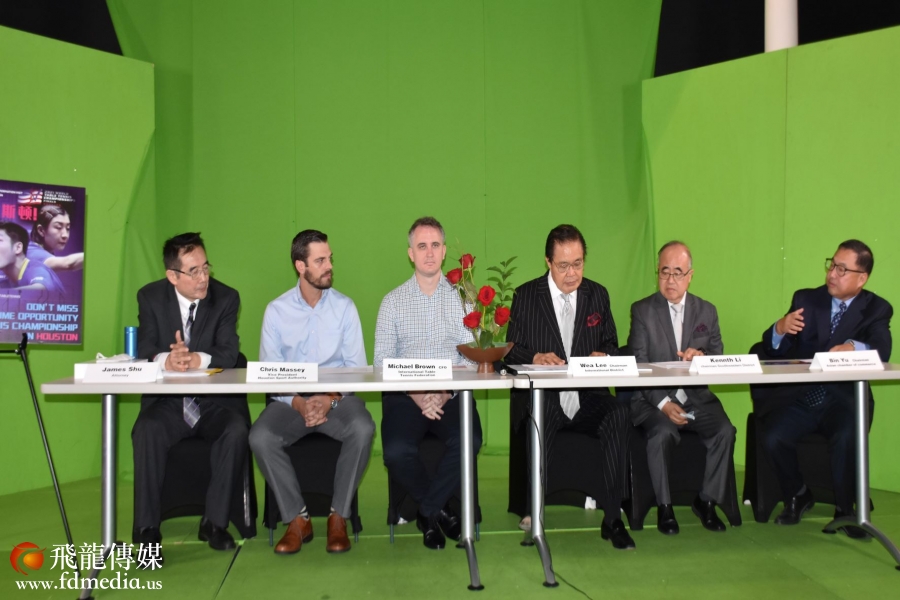 出席新闻发布会的有国际乒乓球联盟首席财务官Michael Brown, 休斯敦体育局副局长Chris Massey,休斯敦国际区区长、美南新闻集团总裁李蔚华,休斯敦西南区区长李雄,亚商会主席喻斌,休斯敦世乒赛组委成员徐建勋律师、休斯敦各界代表及中外媒体记者。