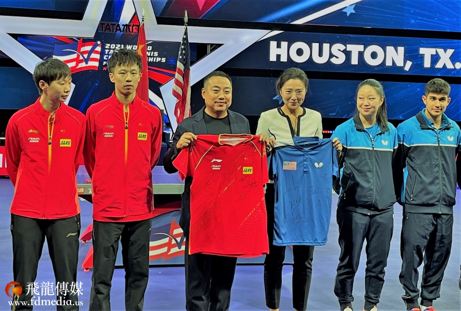 第56届世界乒乓球锦标赛在休斯敦举行,中美跨国混双混11月22日晚进行了首次合练,两队也互相交换了球衣。
