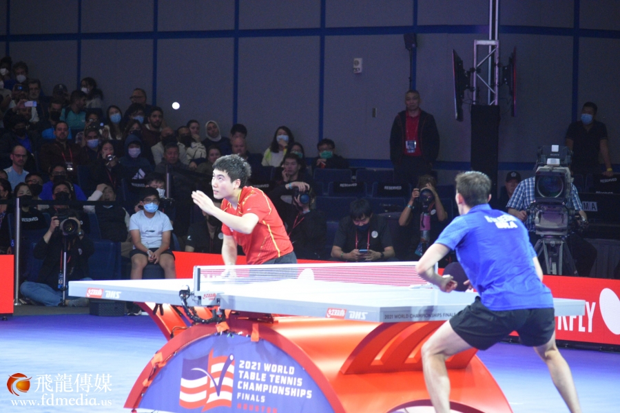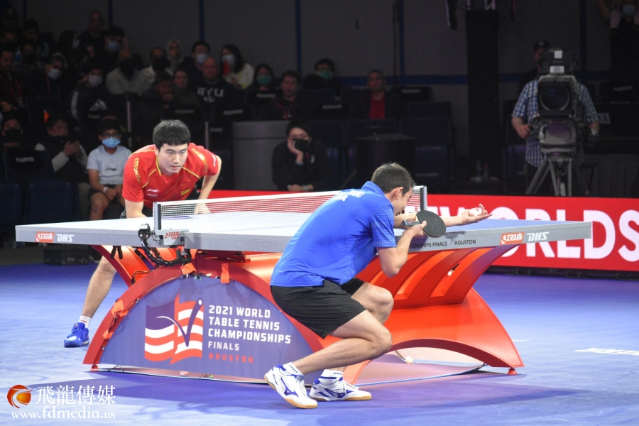 11月27日晚,世乒赛男子单打1/4决赛,梁靖崑在一开始连失三局,在第四局开局前梁靖崑到后台换上新的球衣,历经多场赛事,心理素质极强的梁靖崑冷静下来,沉着应对连追3局,直接扳成3-3平,将比赛拉入到了决胜局,场上的观众不断的给梁靖崑加油打气,在苦战七局后,最后以11-8成功的拿下第七局,总分4-3淘汰雨果•卡尔德拉诺 (巴西),成功晋级四强。