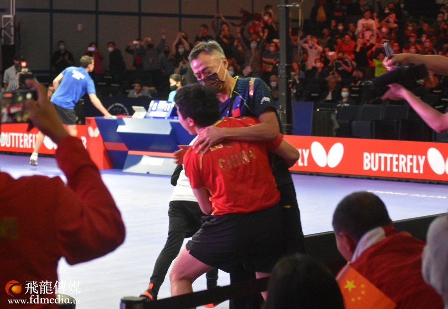 拿下第七局后梁靖崑立刻飞奔跑到场外指导秦志戬身边,和教练拥抱庆祝。从0-3落后再到4-3胜利,梁靖崑创造了第56届世乒赛上的神奇!现场采访时主持人问他,在0比3的情况下,你怎么做到后面连胜四局的?梁靖崑说,调整心里后积极应对,他还特别感谢现场球迷的支持。