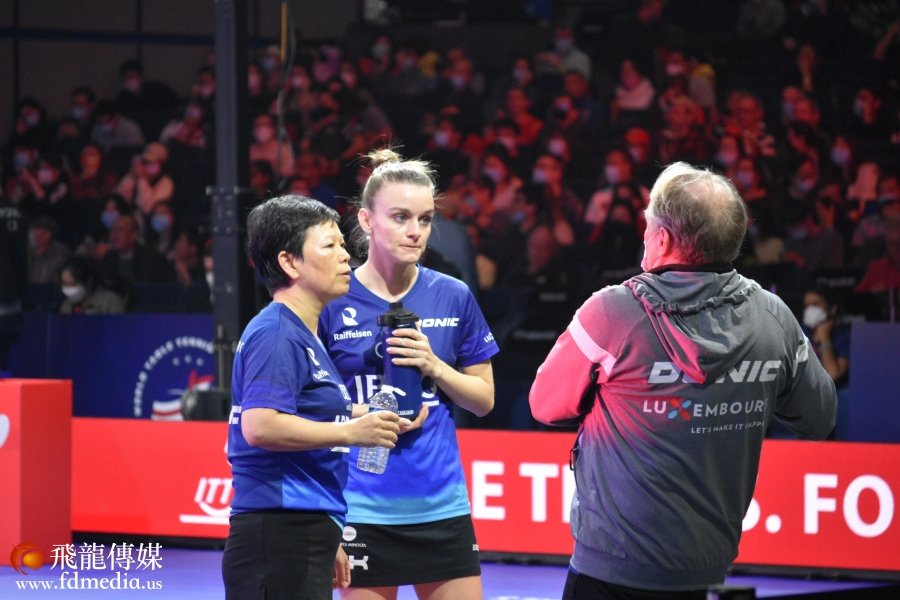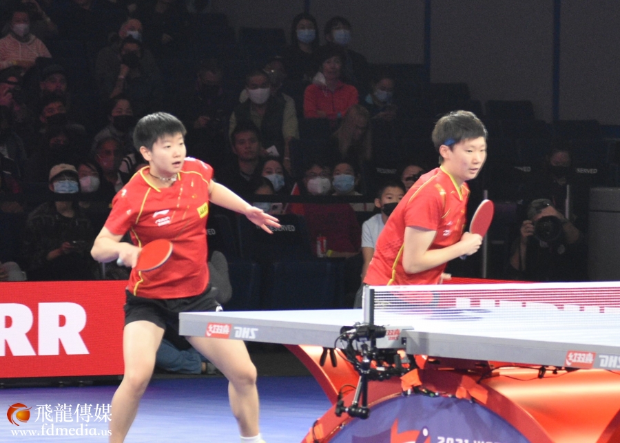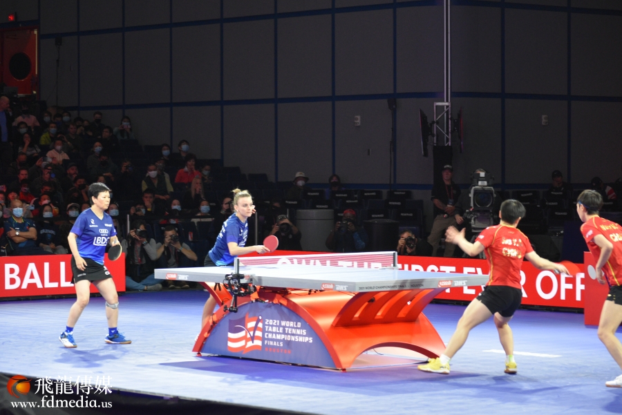 11月28日,第56届世乒赛女子双打半决赛在乔治布什会议中心1号主赛厅举行,下午两点中国选手孙颖莎/王曼昱对决卢森堡的倪夏莲/萨拉。孙颖莎/王曼昱以3-0击败倪夏莲/萨拉成功进入决赛。