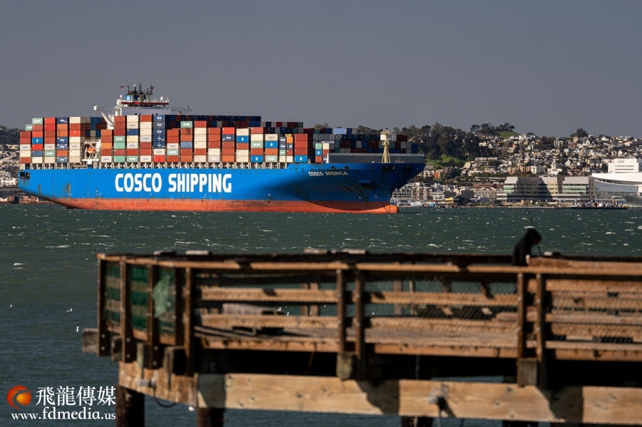 去年,中国远洋海运集团公司的一艘船在旧金山湾。