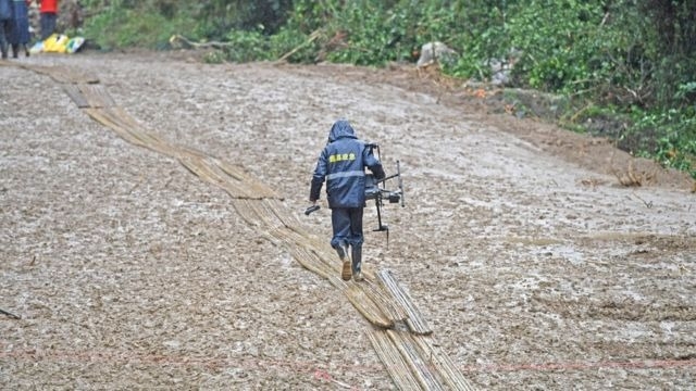 搜索现场仍因大雨而泥泞处处,阻碍救援工作。