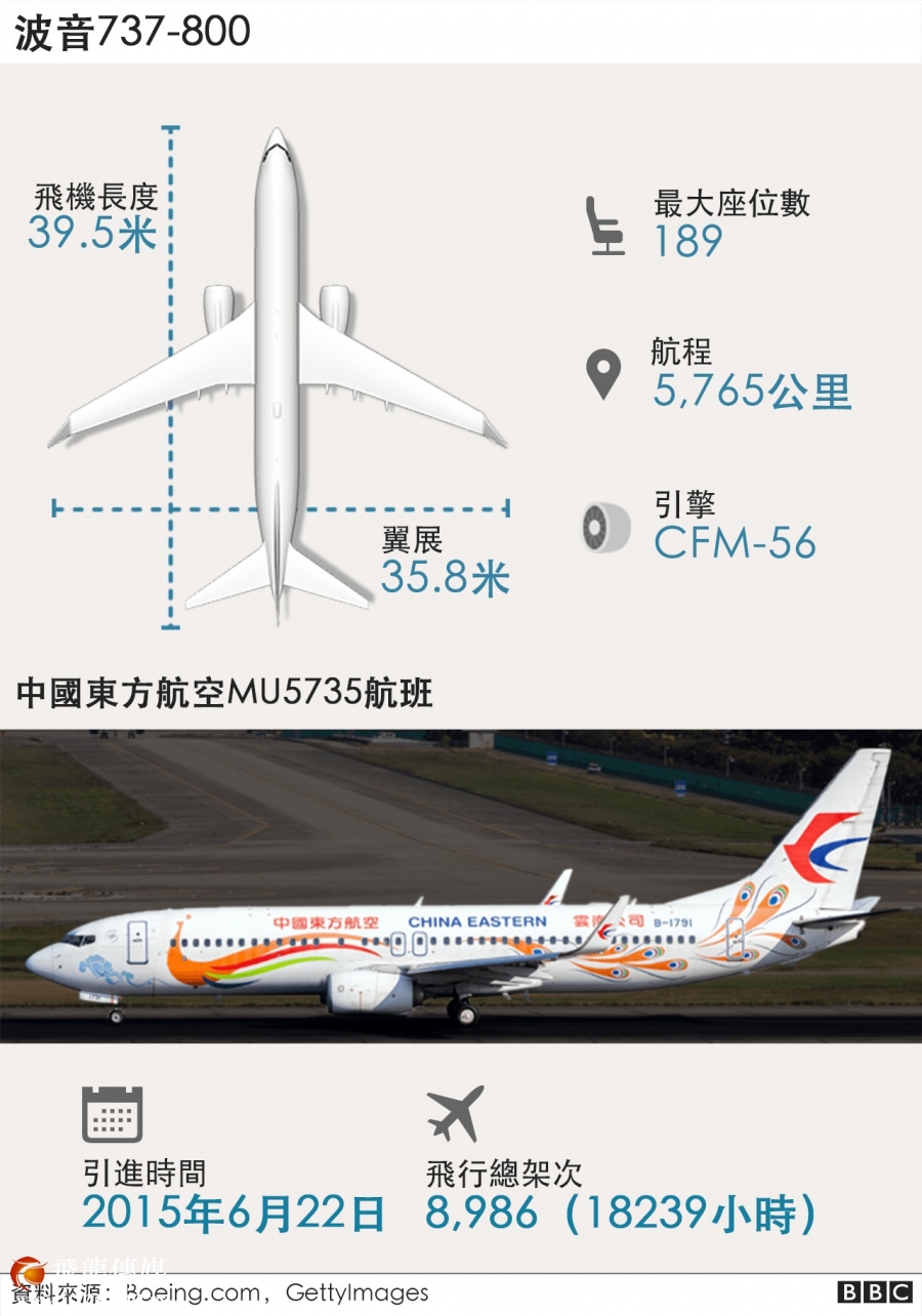 东航MU5735客机3月21日下午从云南昆明飞往广东广州途中,坠落广西梧州藤县琅南镇莫埌村附近山谷。失事客机机型为美国波音737-800,机龄不到七年,事发时载有132人,其中旅客123人、机组9人。