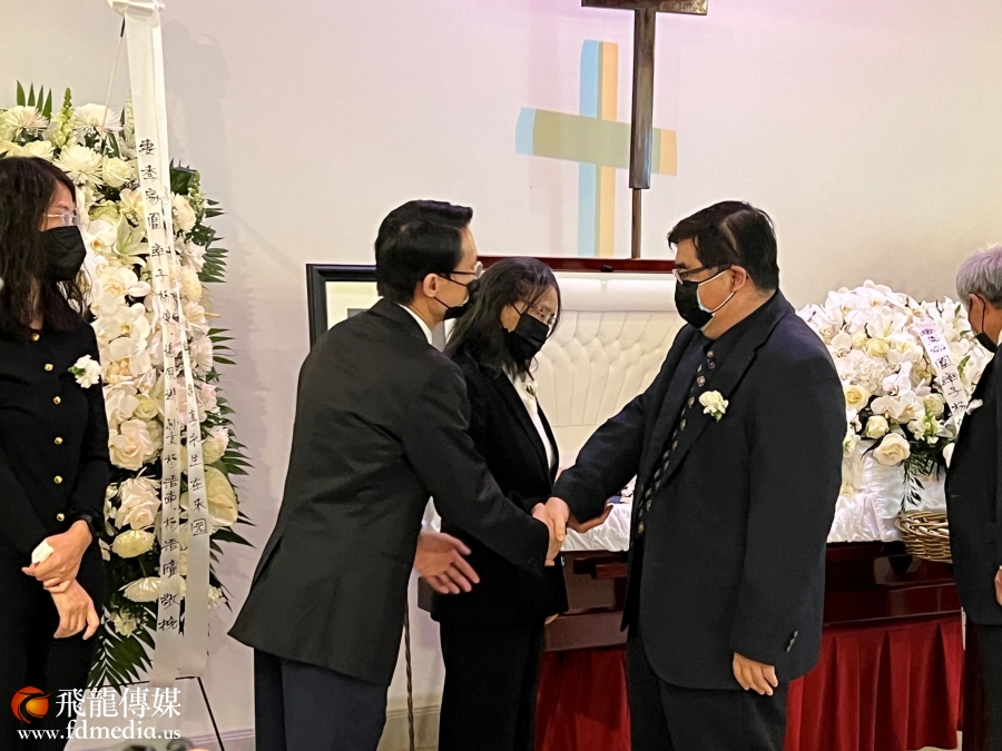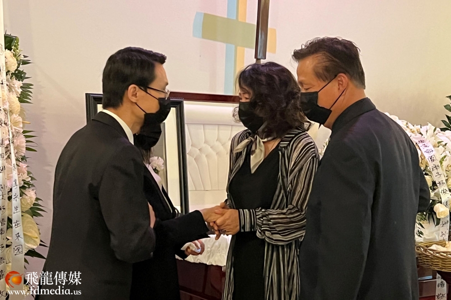 斯坦福市市议员谭秋晴夫妇来送杨家骅先生最后一程,希望季家凰及儿子杨俊节哀顺变。
