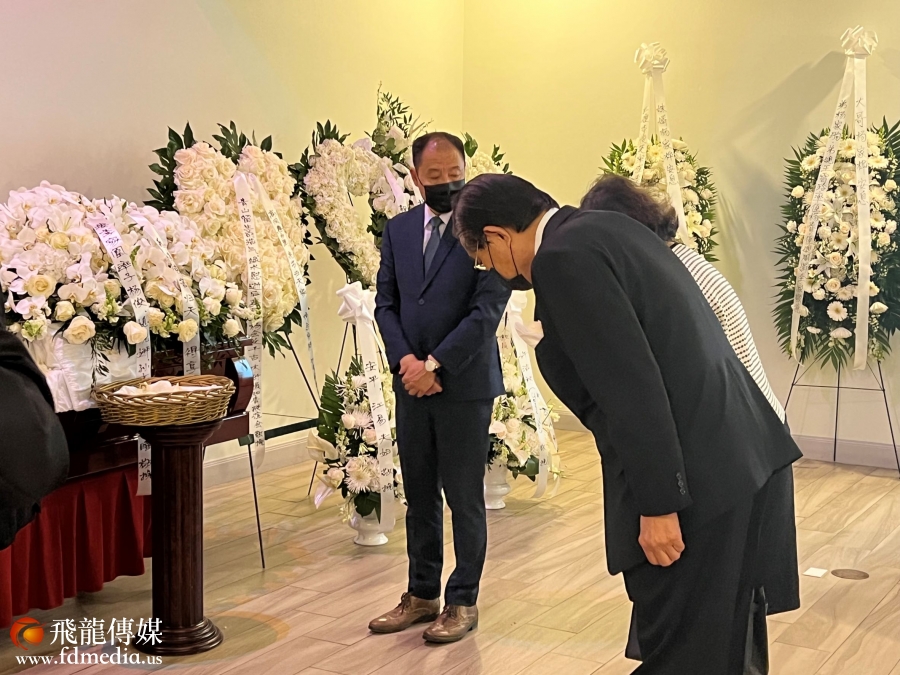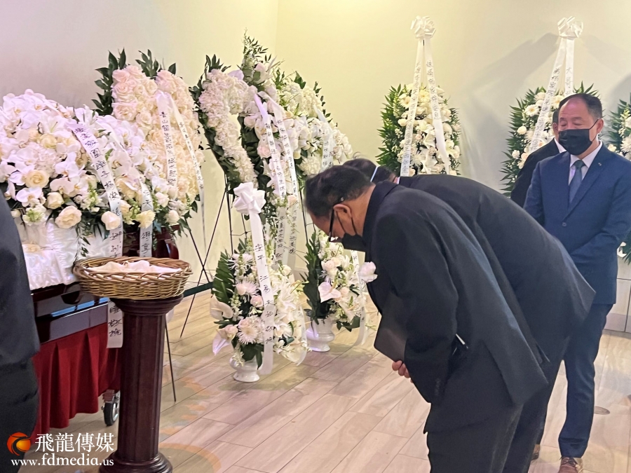 美南新闻集团董事长李蔚华夫妇向杨家骅先生遗体三鞠躬,深表哀悼。