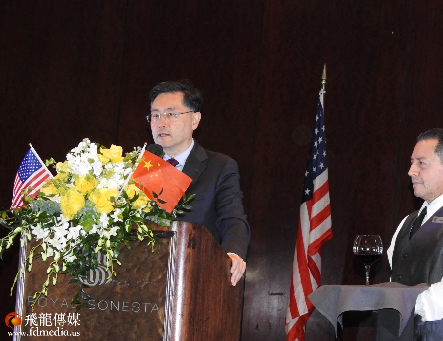 秦刚大使回顾了中美两国关系的发展曆史,“50年前,尼克松总统访华实现跨越世界最辽阔海洋的握手;43年前,邓小平同志访美时说“太平洋再也不应该是隔开我们的障碍,而应该是联系我们的纽带”。习近平主席说,宽广的太平洋两岸有足够空间容纳中美两个大国。这些都啓示我们:两个曆史、文化、制度不同的大国,完全可以走到一起。”