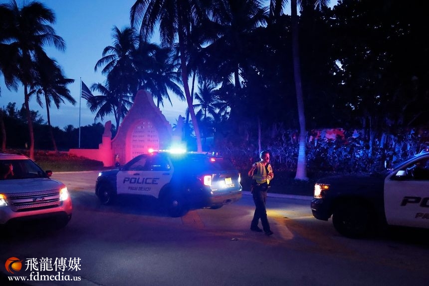 周一,FBI在前总统特朗普位于佛罗里达州棕榈滩的海湖庄园住处入口处。