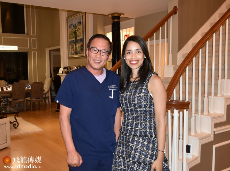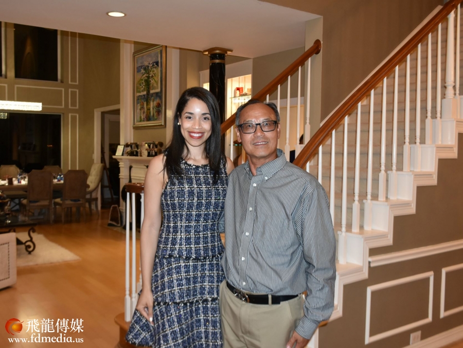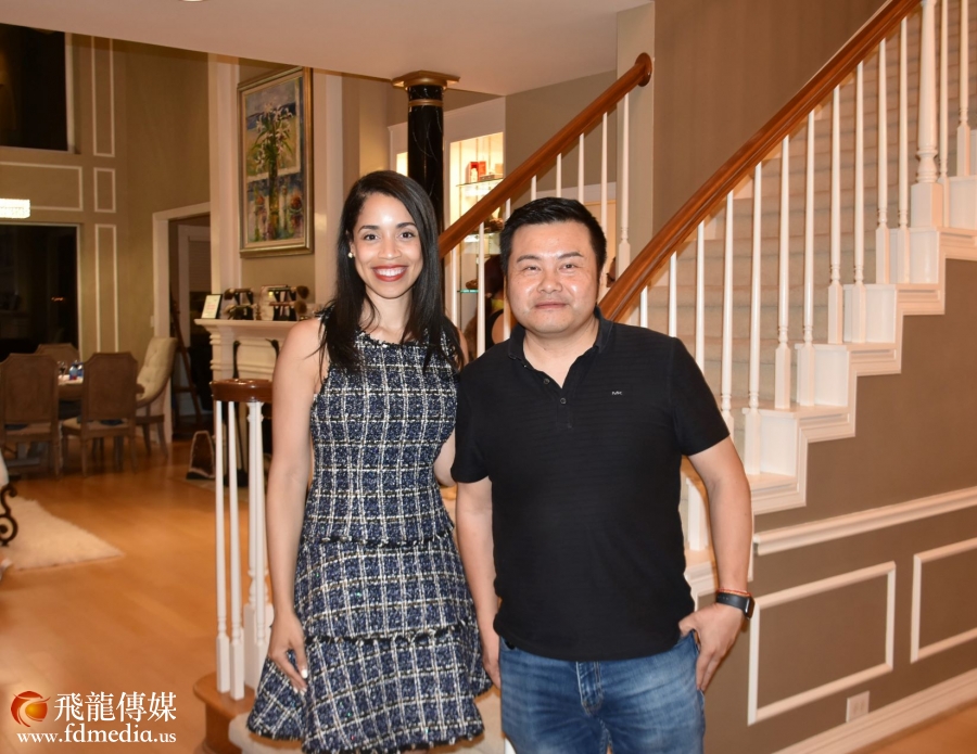 著名侨领丰建伟与阿曼达合影。