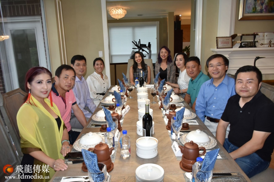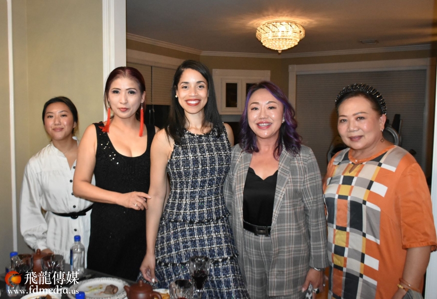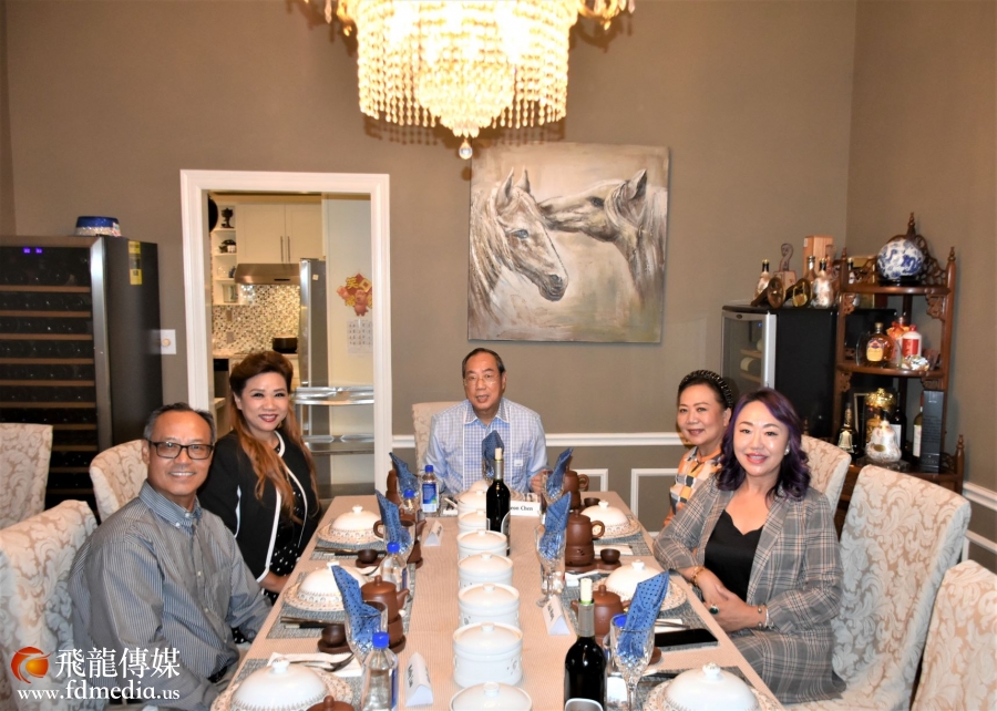 著名侨领陈灼刚、Mary Li、企业家Ada Wang、James Luo、媒体人陈铁梅合影。