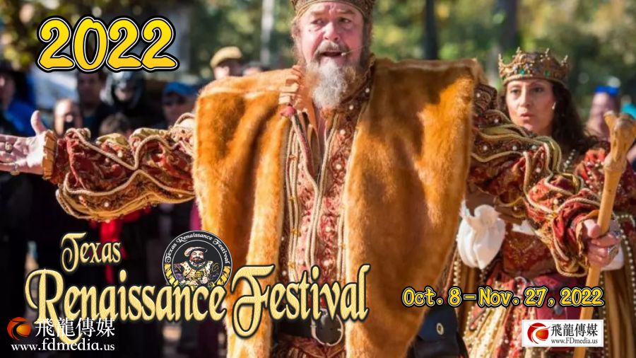 2022年德州文艺复兴节(Texas Renaissance Festival)将于10月8日开幕,连续7个星期的狂欢,直到11月27日结束。