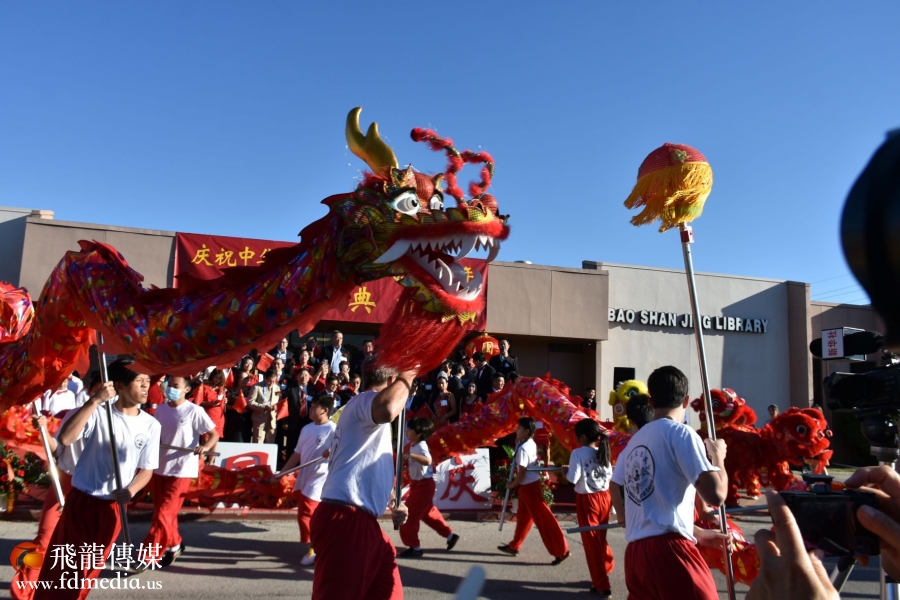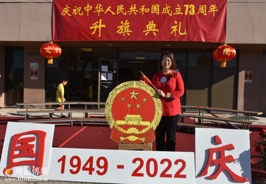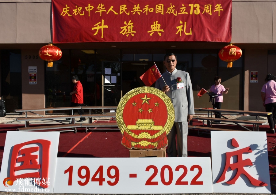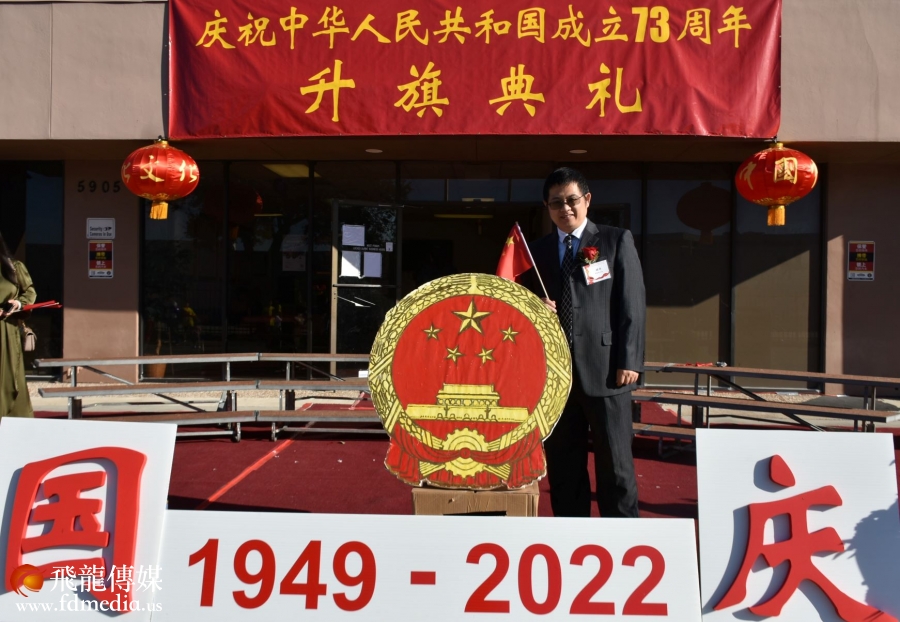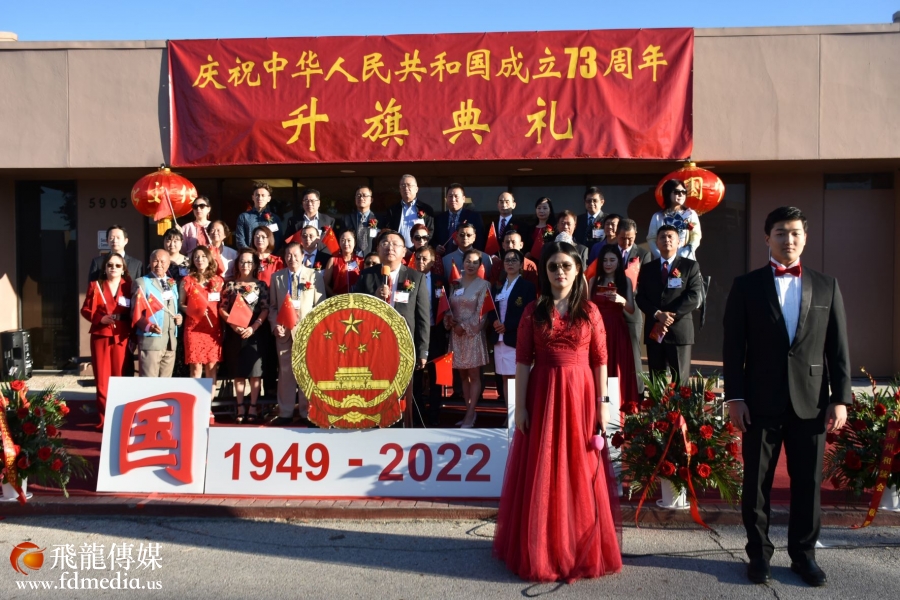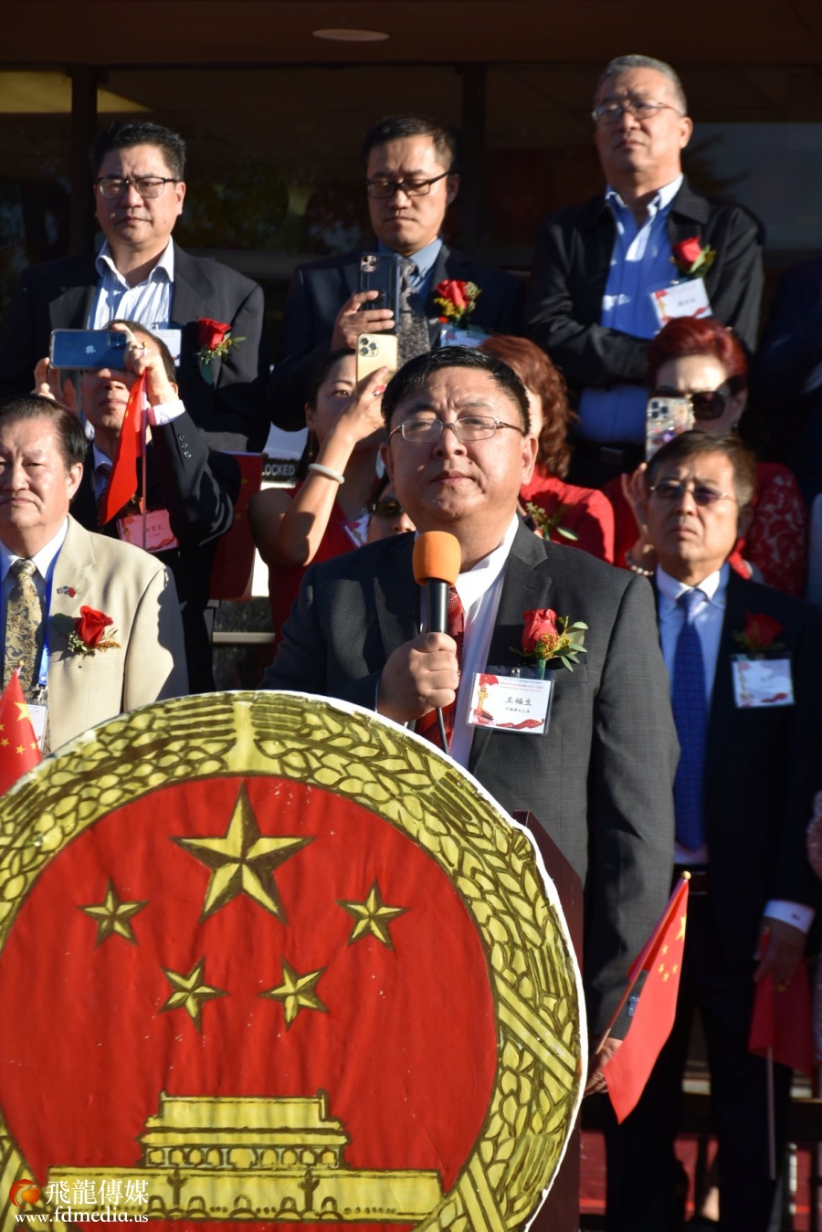 10月1日上午,在休斯敦中国人活动中心大楼前,龙狮飞腾,彩旗飘扬热闹非凡。休斯敦侨界名流、社团领袖、各界杰出人士、留学生齐聚一堂庆祝中华人民共和国成立七十三周年。
