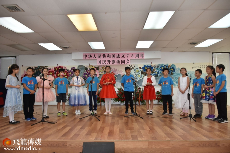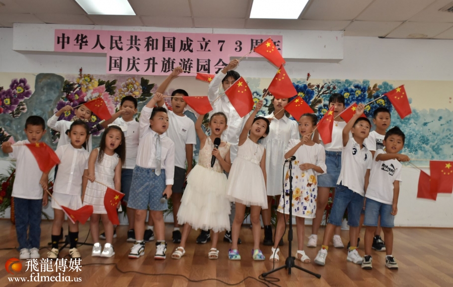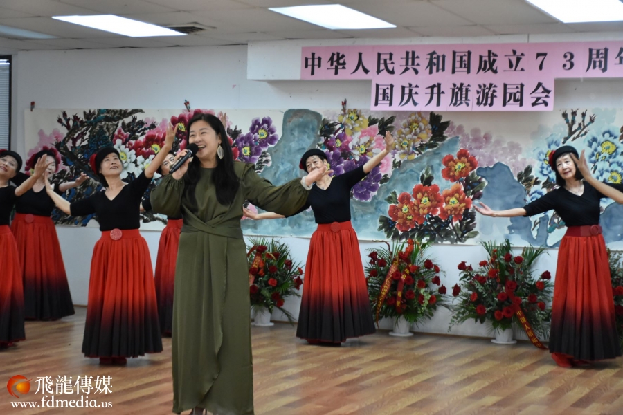 五层高达一米多的生日蛋糕送去对祖国(祖籍国)的祝福!国庆节当天还安排了精彩的园游会文艺节目。担任本次升旗仪式主席的是王福生,由王晓芬担任国庆园游会总导演。