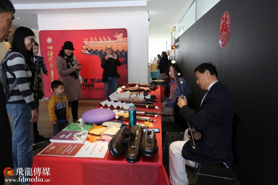 现场展示了杨万青博士收藏的二十多种中国民族乐器,并欣赏他精彩的示范演奏。
