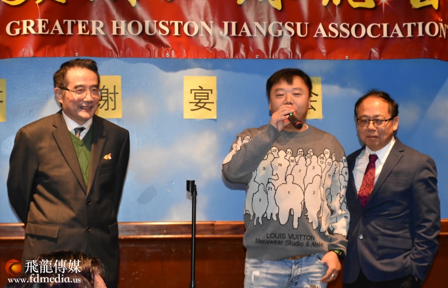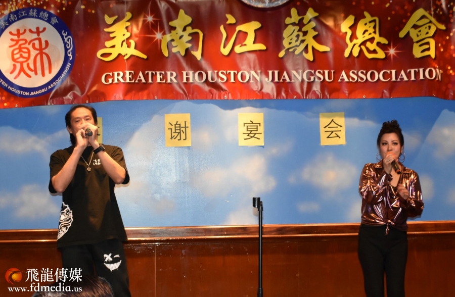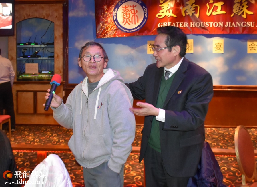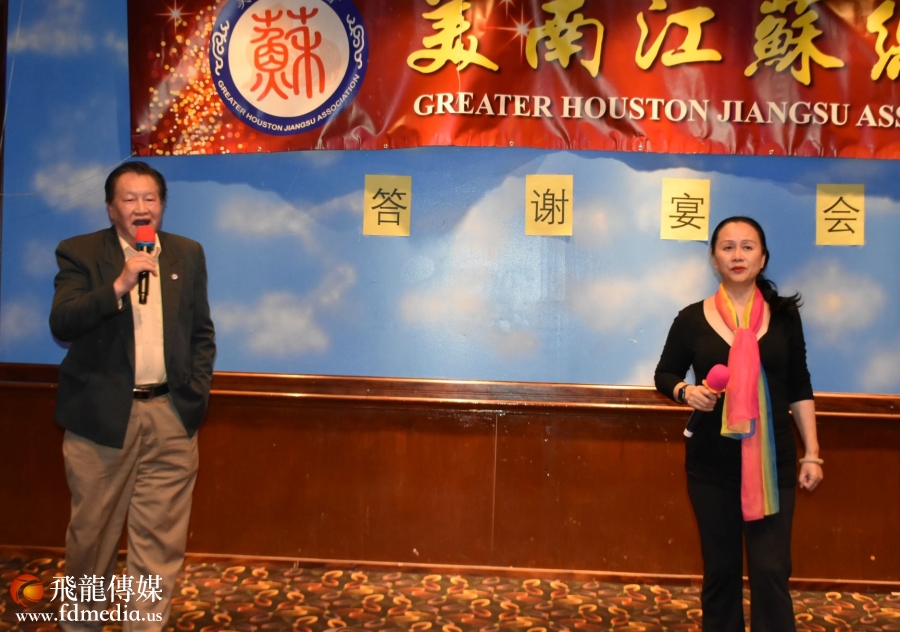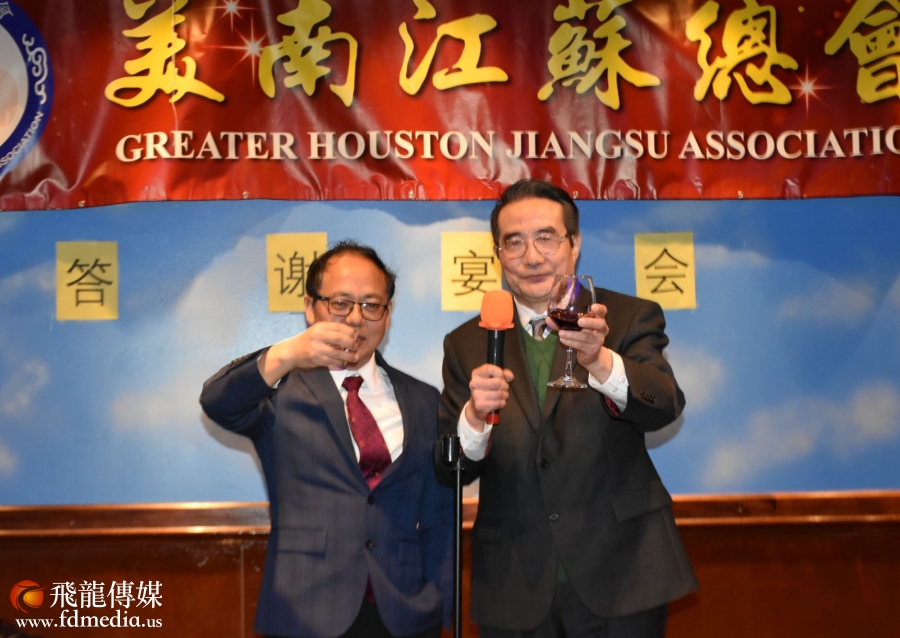美南江苏总会会长韩亮与理事长徐建勋共同举杯,感谢大家的支持。