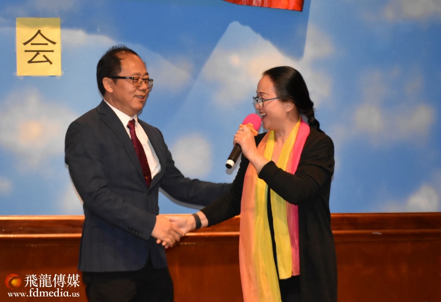 美南江苏总会副会长 Michelle Zhang 介绍嘉宾。