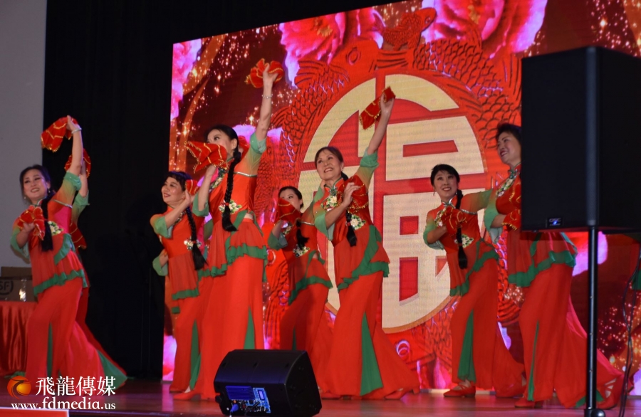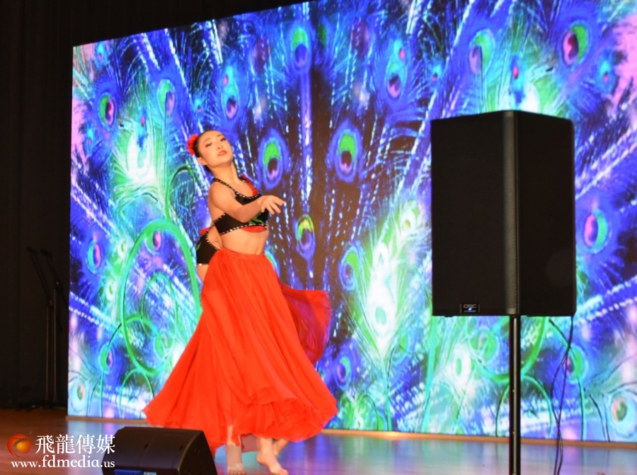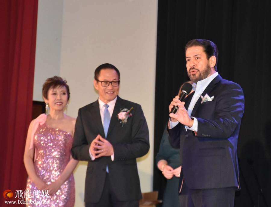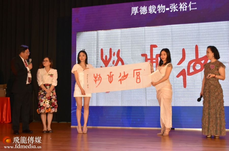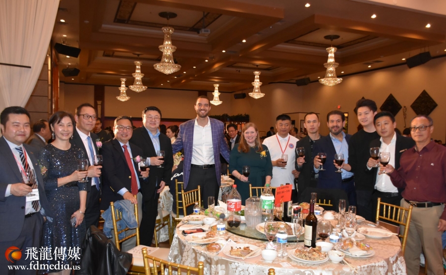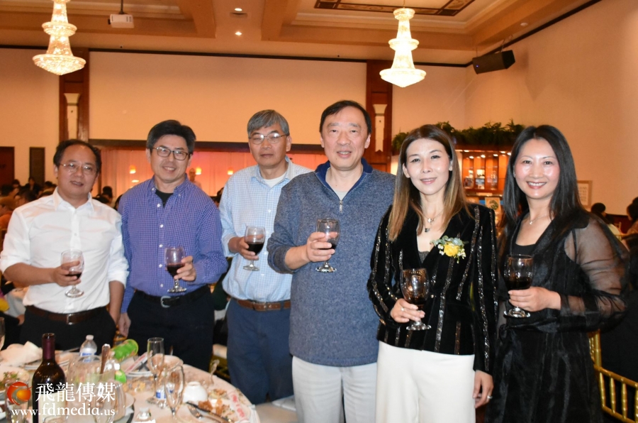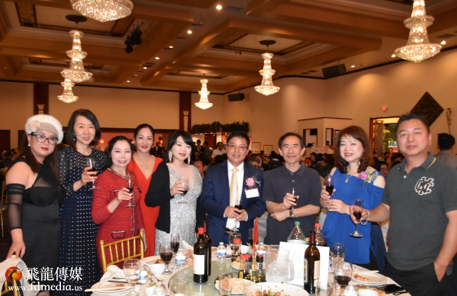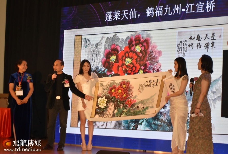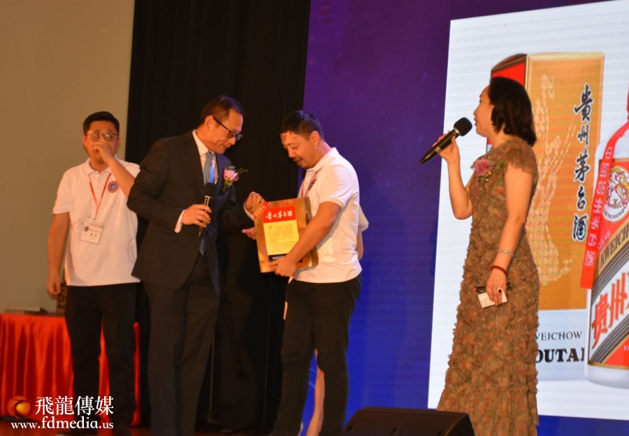 庆祝会上不但有美食美酒,还有丰富多彩的文艺节目,当然少不了的就是拍卖环节,当晚一瓶2019年的茅台拍出了4千美金的高价。著名画家江宜桥的牡丹图也拍出了$2500的高价。
