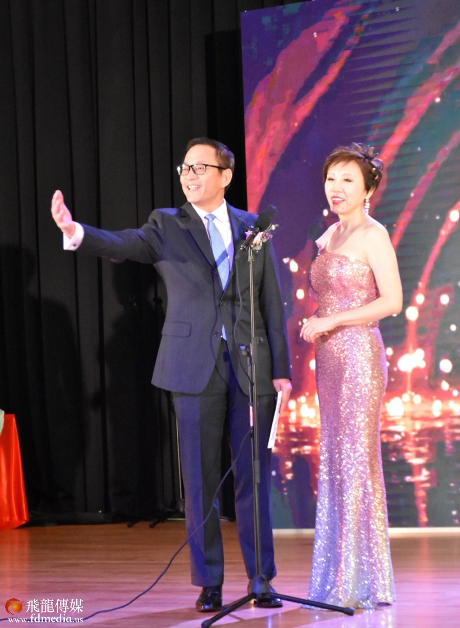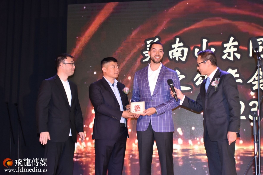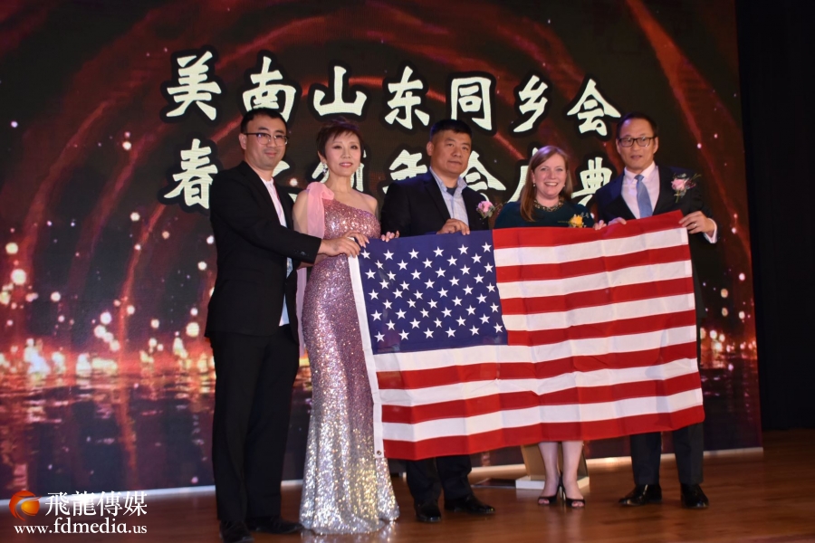 山东同乡会前会长美琪和同乡会永久会长丰建伟介绍主要来宾。