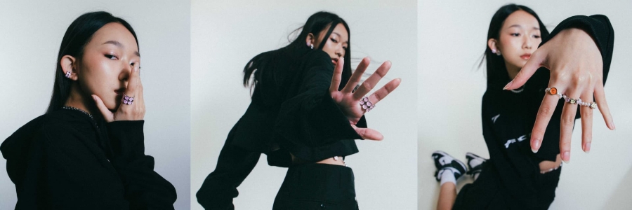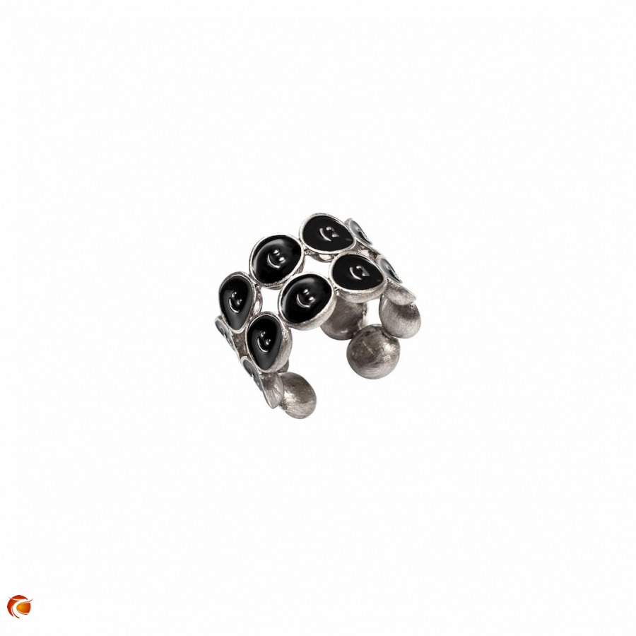 此系列外觀設計立體且圓潤,填入鮮豔配色,整體討喜且淘氣,其中黑色款式以手工拉砂效果,與眾不同的特性帶出品牌注重細節的堅持。包含戒指在內,耳環、項鍊、手環,黑色款皆有此效果。