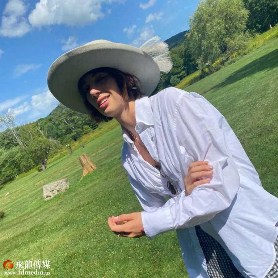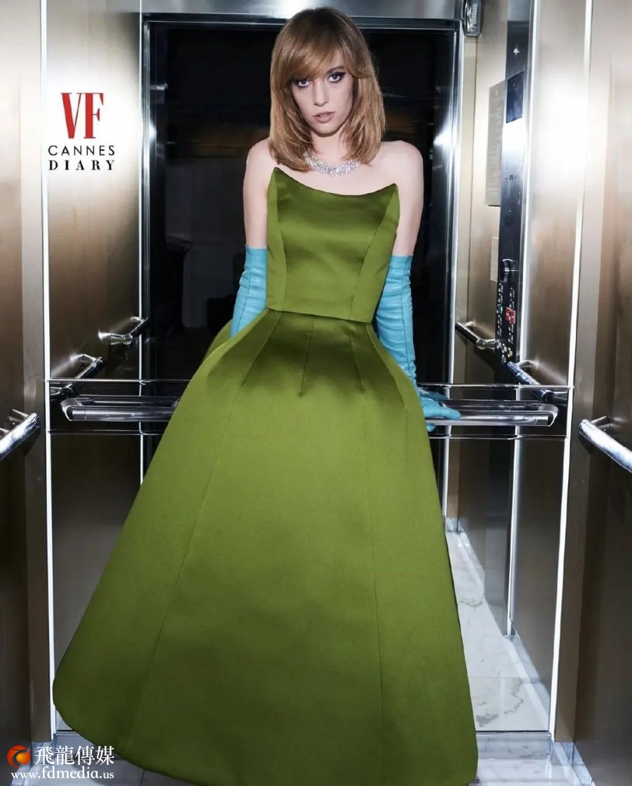 但今年的红毯上,有一抹身影非常特别。在前两天Wes Anderson导演的《小行星城》首映式上,参演该片的Maya Hawke与Rupert Friend一起在红毯上纵情共舞的画面成为了当天的镜头焦点,身穿Prada绿色复古抹胸礼裙的Maya像一个翩然起舞的精灵,自在放松。