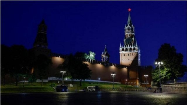 图像来源,REUTERS,莫斯科克里姆林宫外停泊的安全车辆。