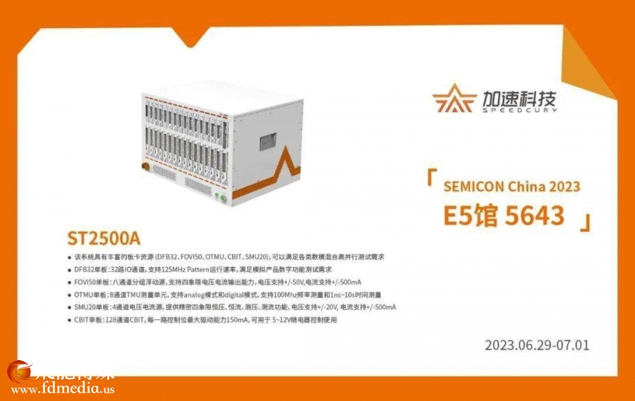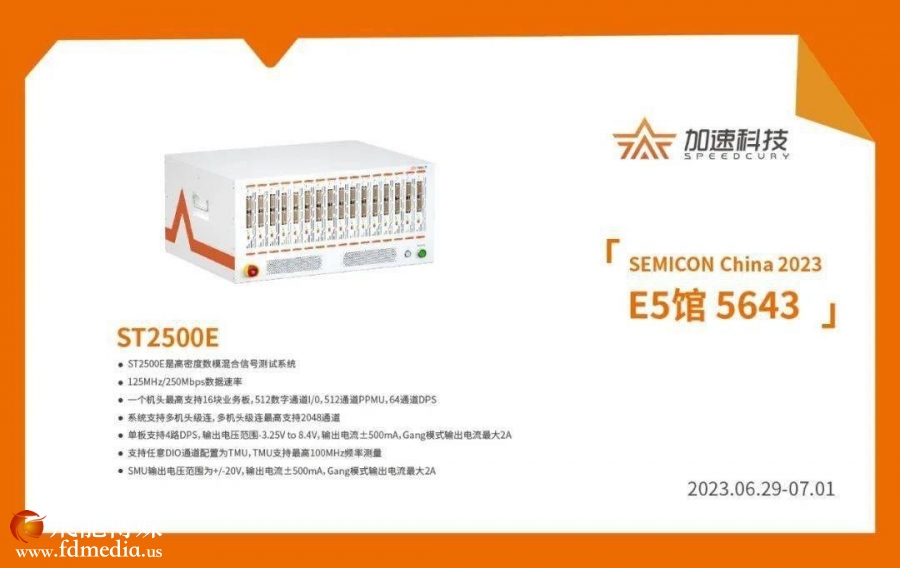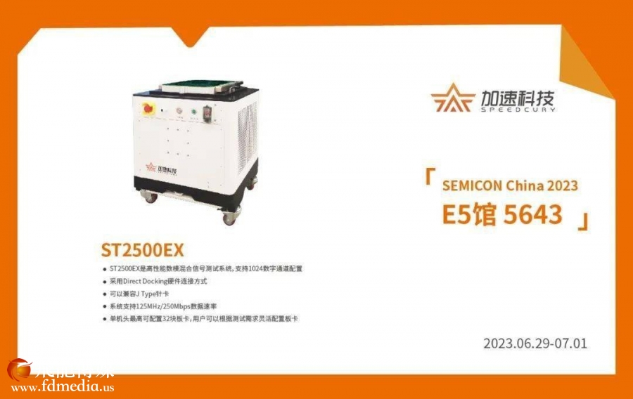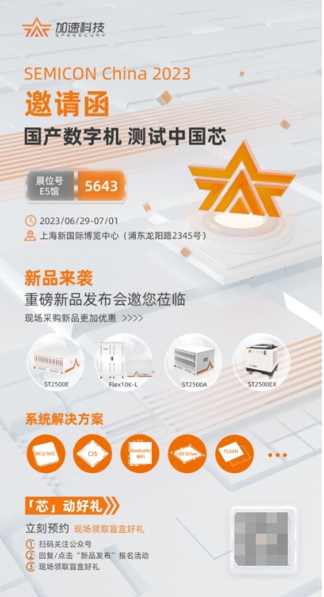 SEMICON China 2023将于6月29日-7月1日在上海新国际博览中心隆重举行。作为业内领先的半导体测试设备供应商,加速科技一直致力于打造国产化高性价比测试解决方案。展会期间,加速科技将携最新研发的LCD Driver测试机Flex10K-L、高性能数模混合信号测试机ST2500E、ST2500A、ST2500EX等新品亮相此次行业盛会。