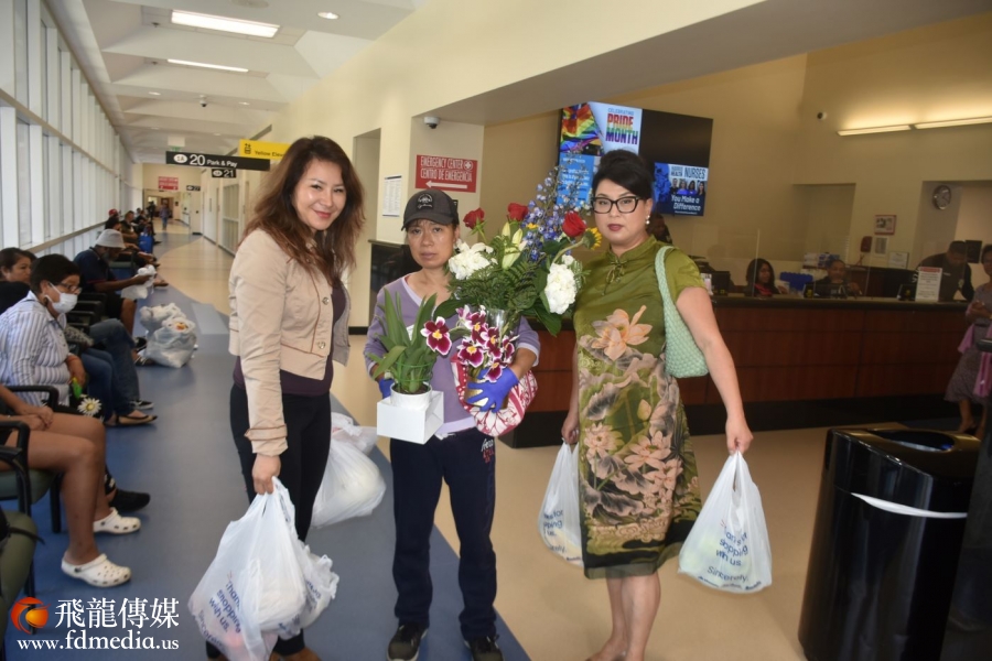 中国人活动中心理事罗敏、受害人妻子柯女士(中)、中国人活动中心理事Susan Chang