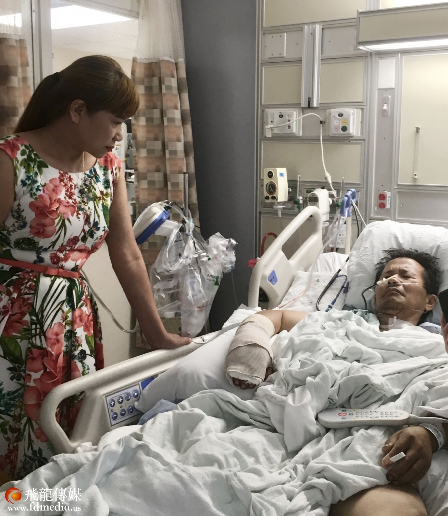 6月30日上午,在大使馆的委托下中国人活动中心董事杨德清、理事 Susan Chang、理事罗敏、湖南同乡会秘书长谢玉芳等人陪同受害人的妻子一起去医院看望了受害人,幸运的是郑先生已经苏醒,意识清楚并且可以简短的对话。公寓负责人周先生对在公寓发生的意外深表遗憾,也委托购买了鲜花和水果,对受害人及家属表示慰问。