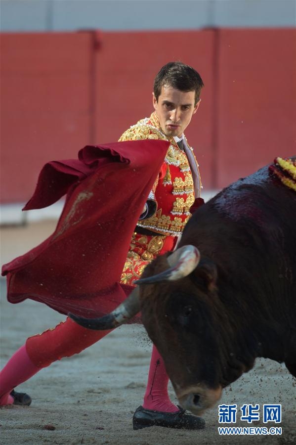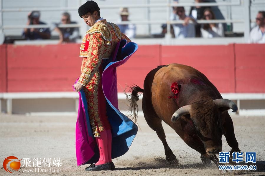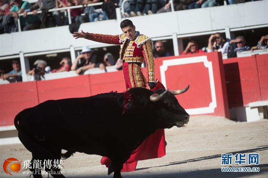 4月16日,在法国南部阿尔勒,西班牙斗牛士亚历杭德罗·塔拉万特进行复活节斗牛表演。 新华社/法新