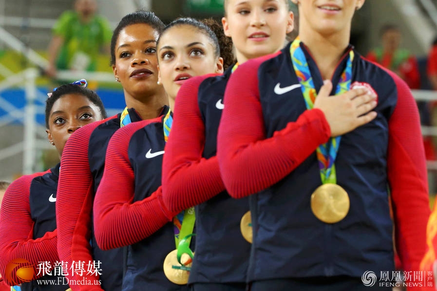 忘记抚胸礼这事情可大可小。2016年8月16日,里约奥运会中,带领美国队获得女子体操团体赛冠军的加布丽尔·道格拉斯(左二),在奏国歌环节没行礼,目光也不知道在看何处,引发网友轩然大波。