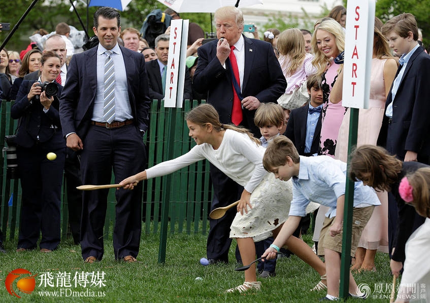 不过,相对于道格拉斯的行为被特别解读,特朗普这次可能就被人觉得只是遗忘而已。图为特朗普吹口哨开始白宫复活节“滚彩蛋”活动。