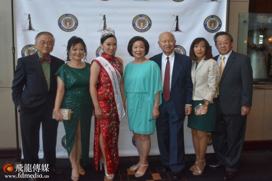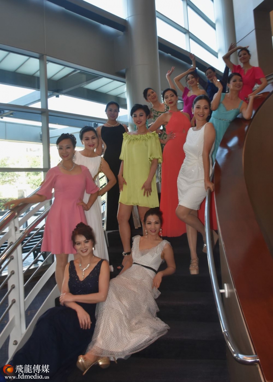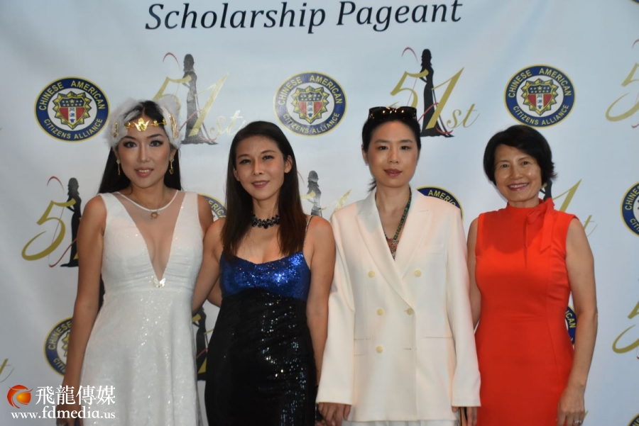 大赛Co-Chair Wandy Kao(左三)、Christina Zhou(左二)与上届冠军Christina Yuan等佳丽合影留念。