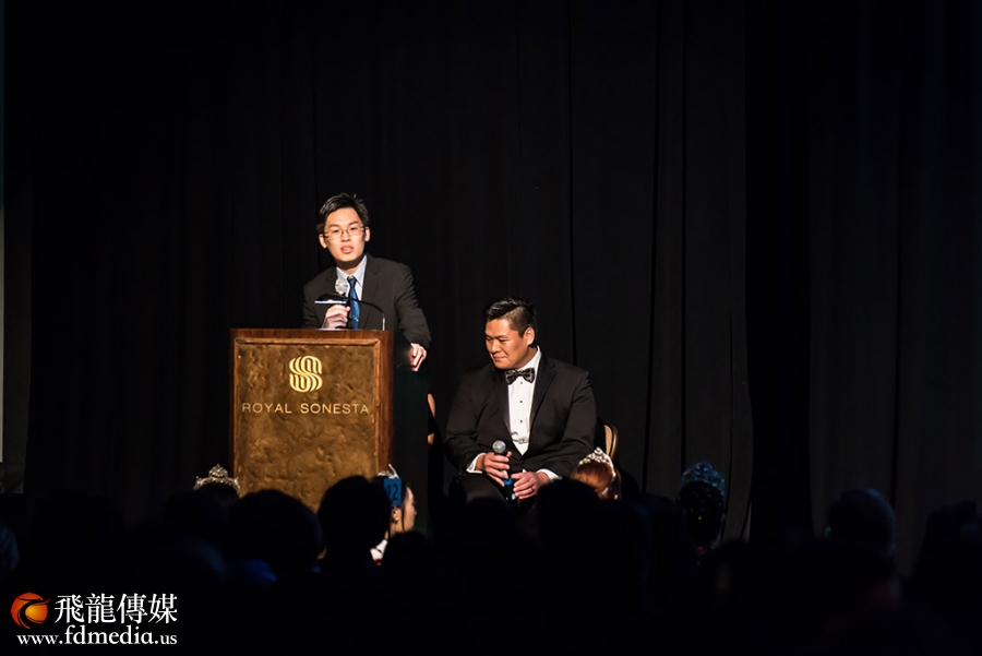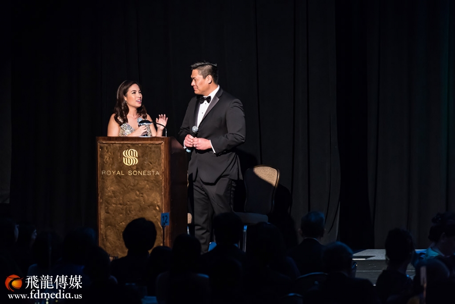 晚会主持人:Rose-Ann Aragon(左)和Jonas Chin(右)