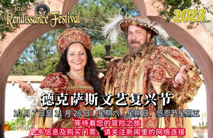 德克萨斯文艺复兴节 (TRF) 每年吸引超过 50 万游客,是全美规模最大、最受欢迎的活动,文艺复兴节历时50天,直至感恩节当天结束。活动上有打扮的各种精灵,各国的奇彩异服,还有美食、音乐、马术表演、各类娱乐和文艺复兴魔法节日。 今年的开幕周末将首次举办庆祝女王生日的特别活动,为了与游客们共同庆祝,主办方在活动周末提供了活动最大的优惠。