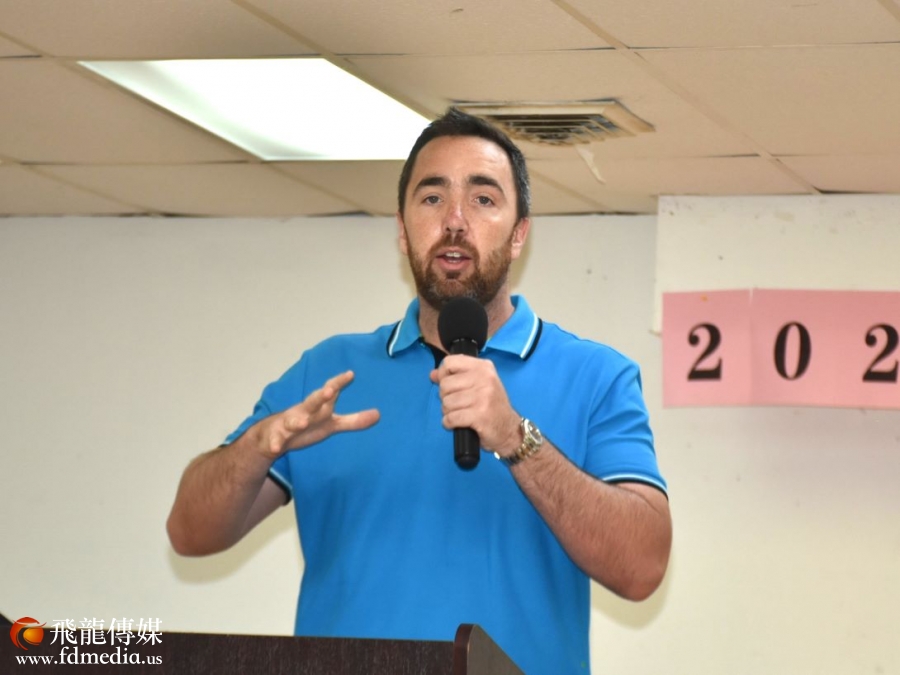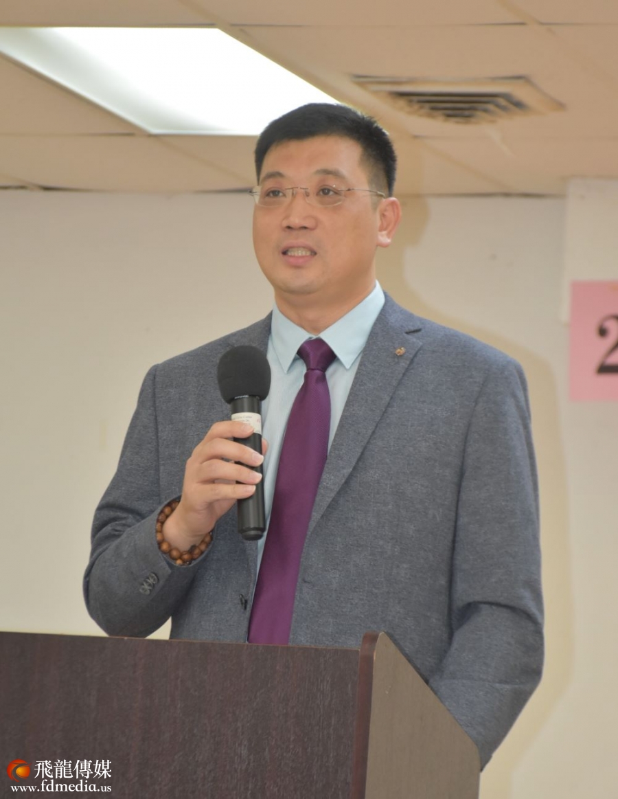 中国人活动中心副执行长张经坤介绍华盛高中生华裔奖/助学金(申请 和颁奖仪式)。