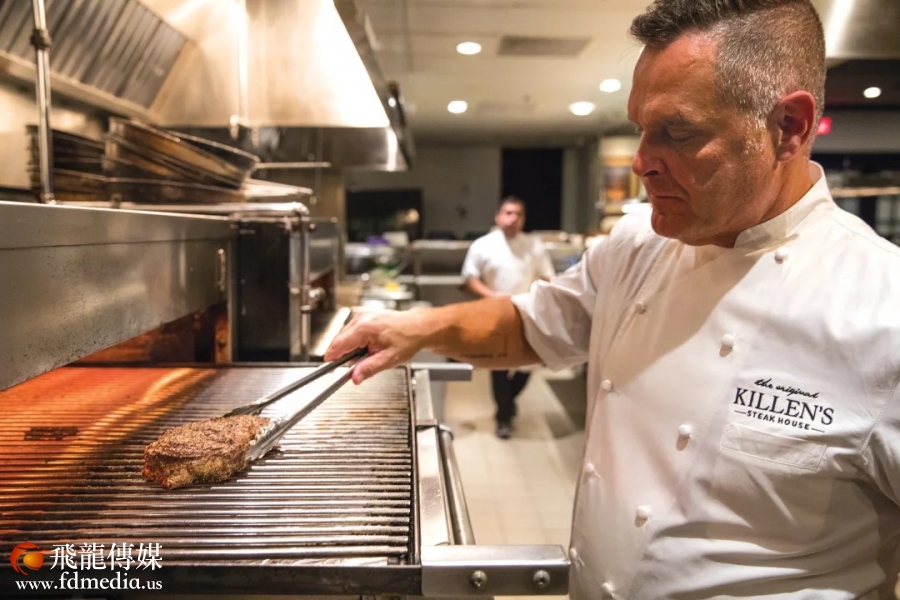 Ronnie Killen on the grill at Killen’s Steakhouse in Pearland.